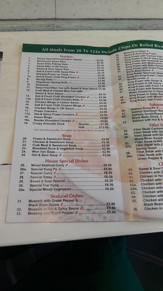 China Jade offers an extensive menu with a total of 193 dishes across various categories. Starters include the House Special Combination Starter and Salt And Fresh Chilli Chicken Balls, providing a perfect beginning to any meal. For those craving a hearty main, the House Specials feature dishes like Special Curry and Special Satay, each made with quality ingredients and bursting with flavor. Chicken, beef, duck, and vegetarian options abound, with signature dishes like Crispy Shredded Chilli Beef and Roast Duck In Black Bean Sauce standing out. Seafood lovers can indulge in King Prawn dishes and an array of soups for a wholesome experience. The vegetarian menu also deserves attention, with several flavorful options like Tofu Kung Po and Fried Mixed Vegetables. With varied choices, there's something for everyone at China Jade, ensuring that every taste is satisfied.